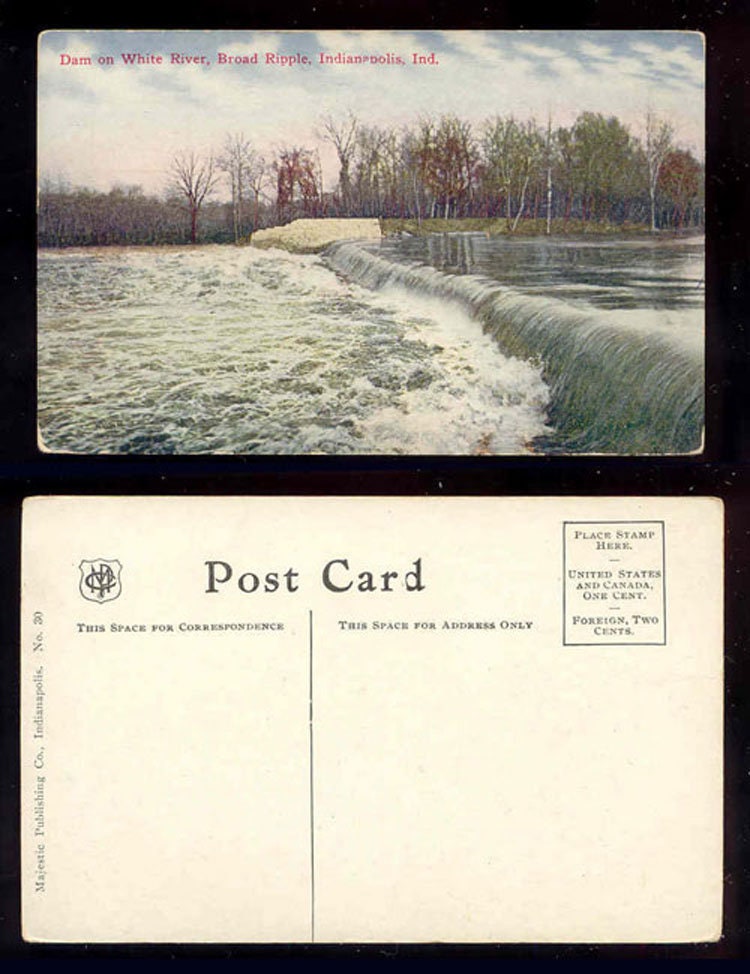 Dam On White River Broad Ripple Indianapolis Indiana Vintage Postcard Indpc243